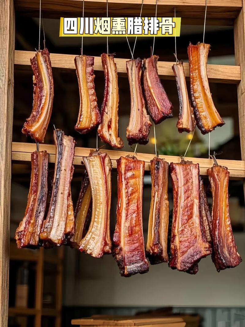 3、风干:将沥干的排骨移到竹挞上风干,过程中要随时翻面,确保均匀干燥。阳光晾晒:第二天,用绳子将排骨吊起,放在通风且阳光充足的地方晾晒。晾晒过程中,腊排骨的颜色会由深红逐渐转为玫瑰红。保存 晒制成功后,用保鲜袋密封好腊排骨,放进冰箱里保存。这样可以延长其保质期,随吃随取。