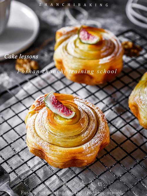 在叠被子时注意松弛到位。注意三折两次时一定要放入冰箱冷冻松弛,否则面团会断裂。杆压折叠三折一次时放冰箱也会导致黄油断裂,因为黄油和面团的层次太厚,黄油会先动硬。醒发时不要用太高的温度,因为丹麦面包的黄油比较多,还有这个黄油属于低温油。