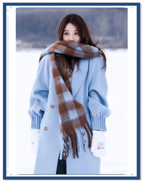 这些颜色不仅能够衬托出淡蓝色外套的优雅气质,还能让整体造型看起来更加柔和、舒适。如果想要增加一些亮点,可以尝试在配饰上使用一些鲜艳的颜色,如红色、黄色或粉色的围巾、帽子或包包,这些都能为整体造型增添一抹亮色,提升时尚感。