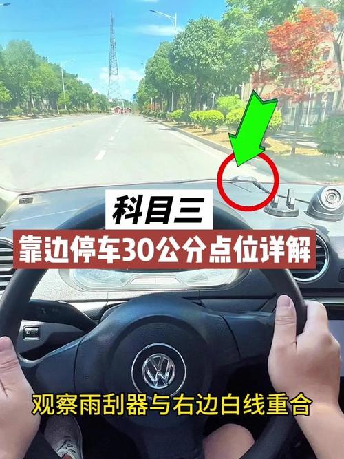 科目三靠边停车判断30cm距离的核心方法是通过雨刮器至高点、右后视镜或方向盘中心点作为参照,结合微调操作实现精准停车。 具体操作及要点如下:常用判断方法雨刮器至高点法观察前挡风玻璃雨刮器的最高点(如铆钉位置)与道路边缘线重合。由于身高差异,需提前通过练习微调参照点。