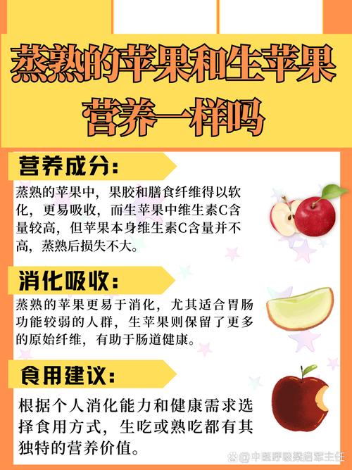 综上所述,煮着吃苹果可以更好地保留和发挥苹果中的营养成分,同时适合更多人群食用。当然,生吃苹果也有其独特的口感和营养价值,但相比之下,煮着吃在某些方面更具优势。
