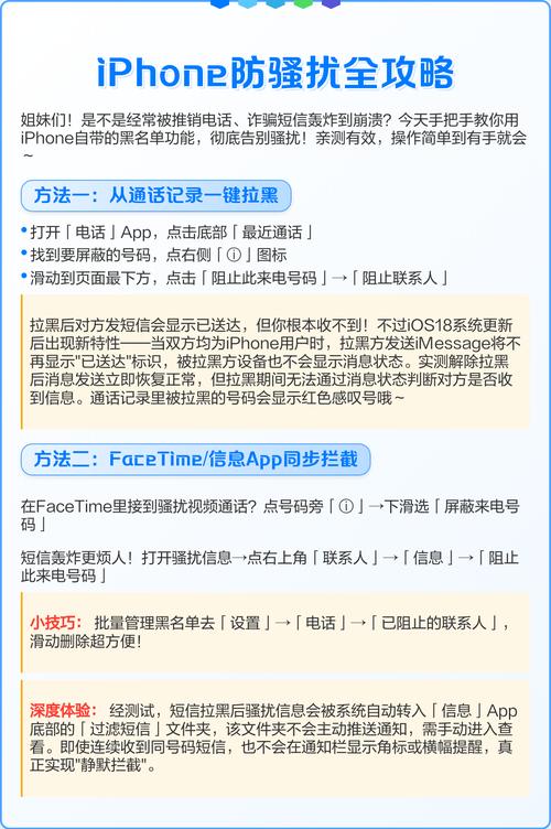 解锁手机并打开电话应用 首先,解锁你的iPhone手机,然后在桌面上找到并点击“电话”图标,进入电话应用。查找并选中骚扰电话 在电话应用中,点击底部的“通话记录”选项。在打开的通话记录页面中,找到你想要拉黑的骚扰电话,并点击该电话右侧的感叹号图标,进入通话详情页面。
