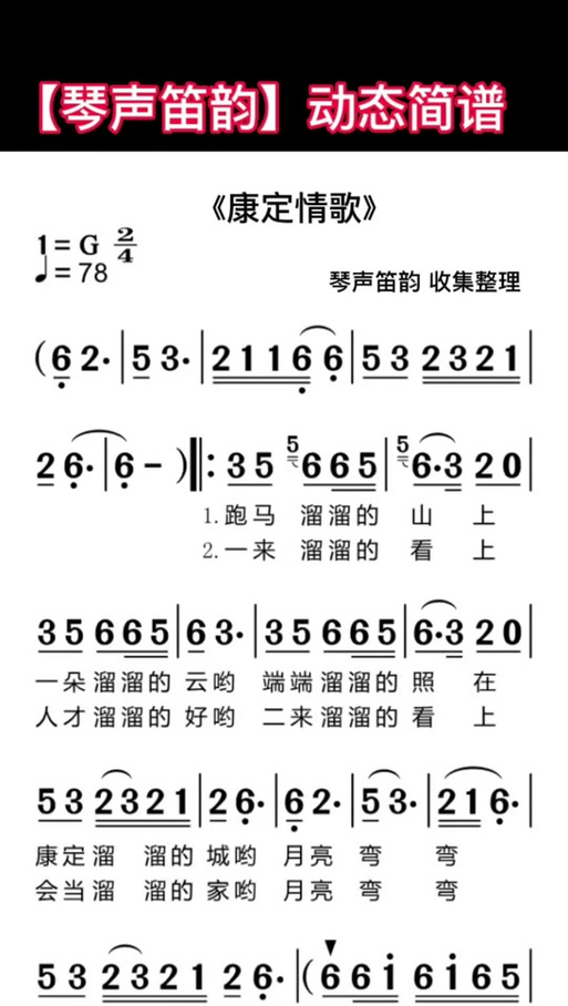 5、尽管汉子唱了几遍都有不同,但王洛宾还是凭借艺术家特有的敏感听出了这“溜溜调”中那般特殊的音律之美。经过改编创作整理之后,这首久唱不衰的民歌经典《康定情歌》就这样诞生了。其歌词曲调朗朗上口,完美结合;那动听的旋律,跌宕起伏,优美怡人。创作背景 大多数人认为该歌曲是由民歌发展而来。