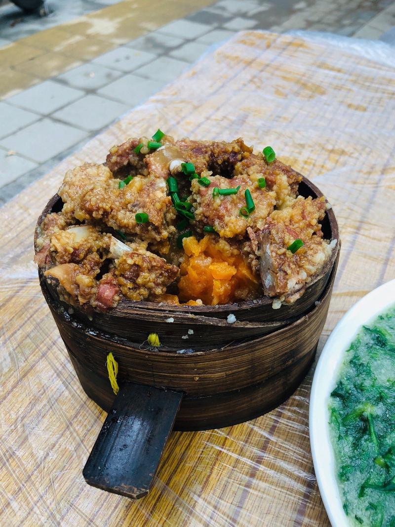 蒸制食物:在蒸具中铺上一层蔬菜,如白菜或土豆等,将腌好的肉和鱼均匀裹上米粉,分层摆放在蔬菜上,再将茼蒿放在最上面。最后盖上锅盖,大火蒸制一定时间,具体时间根据食材种类和数量而定。此外,沔阳三蒸这道菜不仅美味可口,还具有丰富的营养价值。