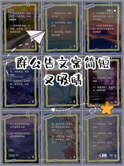 3、群公告应直接宣布重要信息,如活动时间、地点和主题。 使用吸引人的词汇和表达方式,激发成员的兴趣和好奇心。 提供具体的活动详情,让成员了解活动的内容和安排。 结尾部分呼吁成员积极参与,并强调群规和注意事项。通过以上方法,可以撰写出清晰、有吸引力且符合群公告文案要求的文案。