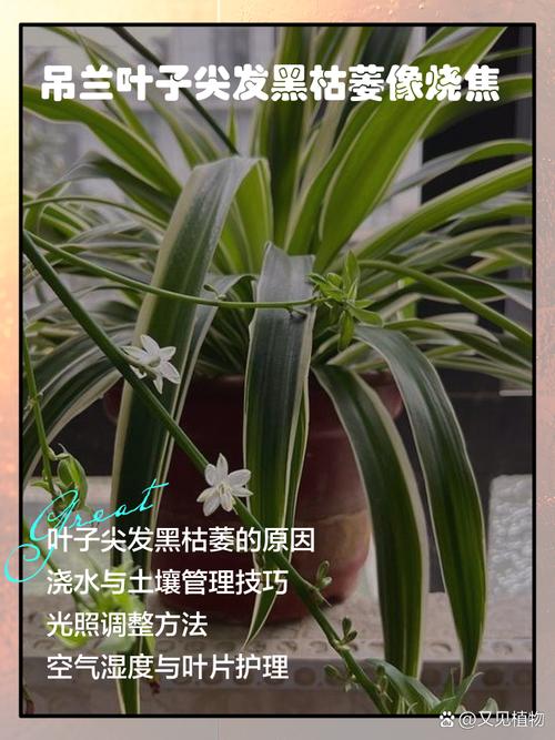 兰花叶子尖发黑,可以采取以下措施进行处理:调整温度:冬季要确保兰花处于温暖的环境中,避免温度过低导致叶子受损。早春时节,气温波动较大,应耐心等待气温稳定后再移至室外,以防冷空气对兰花造成伤害。注意遮阳:兰花不喜欢强烈的直射光,过多的直射光可能导致叶尖变黑。