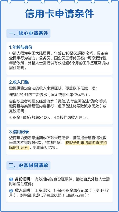 年满18周岁:农业银行规定,信用卡申请人必须年满18周岁。这是基于法律规定和信用卡使用的风险考量,确保申请人具备足够的法律意识和民事行为能力,能够承担相应的法律责任。最高年龄限制 不超过65周岁:除了最低年龄要求外,农业银行还对信用卡申请人的最高年龄进行了限制,即不超过65周岁。