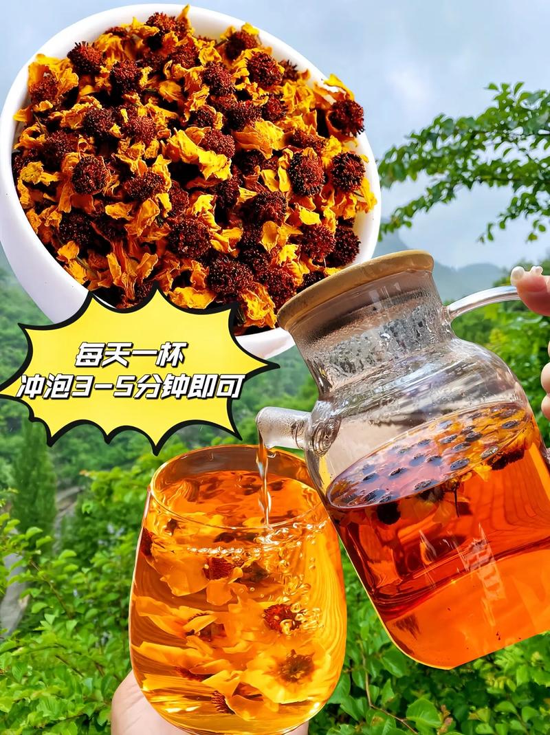3、水温控制:第一次冲泡昆仑雪菊时,水的温度需控制在90摄氏度以上。高温有助于将雪菊茶中的营养物质充分浸泡出来。投放雪菊:将清洗干净的昆仑雪菊放入茶杯中,根据个人喜好和身体状况调整雪菊的数量。一般来说,“三高”人群一次可以冲泡12-16朵,正常人群则控制在8-12朵之间。