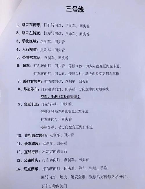 2、科目三考试时间安排:考试开始于9:00至11:30,下午的考试则在2:00至5:30进行。在准备科目三考试时,特别要注意以下关键点:变换车道操作:当听到“变道”指令,务必在打开转向灯后等待3秒再进行方向盘调整。切记,如果行驶在单车道,禁止随意变道。直线行驶:保持远视行驶,确保车辆直行。