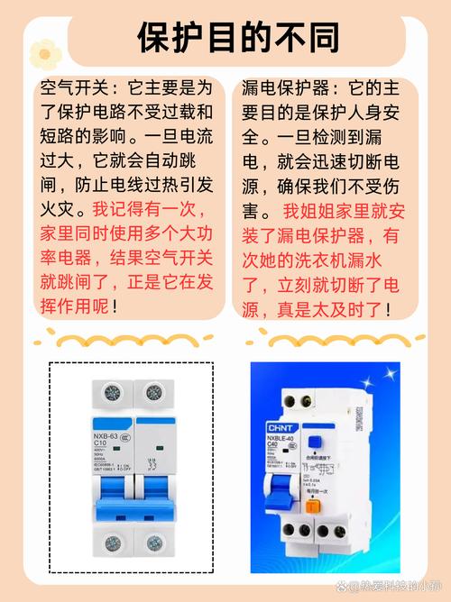 5、空气开关作用:空气开关相对于大线路的电流起着保护作用,主要测量电路中的的短路以及负荷太重的电流,但只是起着保险丝的作用,保护线路不被损坏。漏保 漏保也叫作漏电断路器,是指线路中漏电电流超出预定值的时候,可以自动动作的开关。