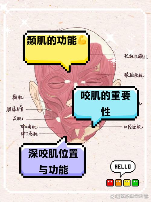 咀嚼肌位于脸颊两侧,主要负责上提下颌骨以及使口闭合。以下是对咀嚼肌的详细解位置 咀嚼肌分布在颌面部,吃东西时,如果用手触摸脸颊,会感觉到比较硬的位置,那便是咀嚼肌所在。组成 咀嚼肌是一个强大的头肌群,主要包括咬肌、颞肌、翼内肌和翼外肌。