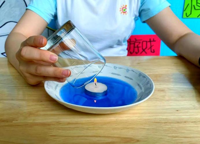 1、玻璃杯中并非真空,而是充满了空气,杯子与水面接触之后,杯中的空气将水排开,蜡烛借助杯中的空气在水底燃烧。材 料玻璃杯、玻璃缸、点火器、蜡烛步 骤将蜡烛放入玻璃缸。往玻璃缸中倒入纯净水。用点火器将蜡烛点燃。玻璃杯倒扣在蜡烛上方并匀速向下压,观察接下来发生的现象。