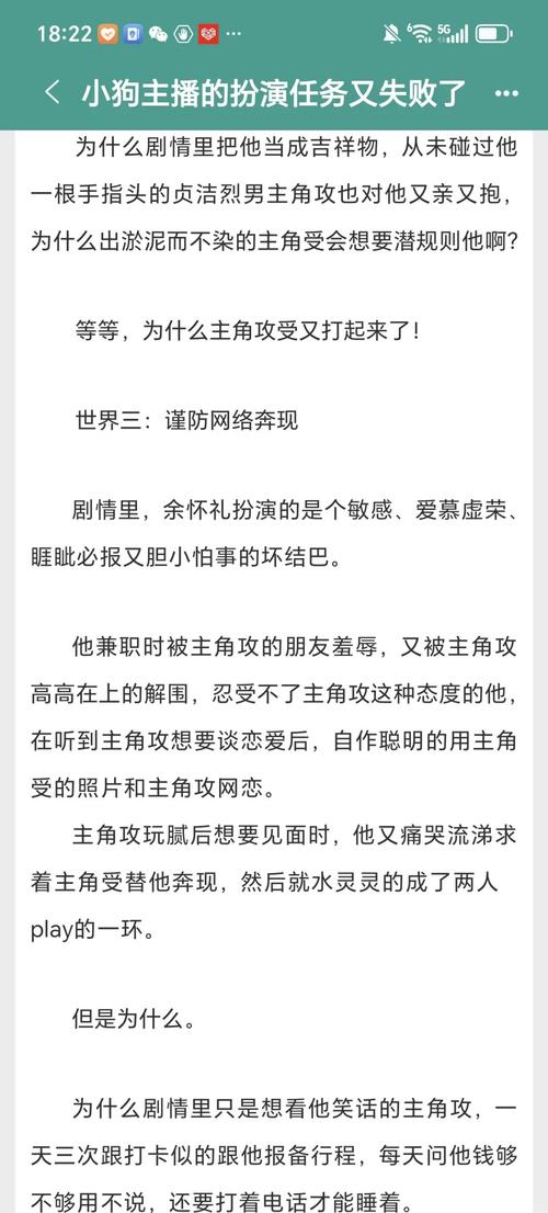 6、我喜欢跳脱受,逗比受。最近又重看了一遍,《我快死了》《渣受生存手册》《荣获男主》《完美命运》这几本我觉得挺好的,很多穿书文里欢脱受,吐槽受也很可。《剧本不同》《拯救男二》之类的一些老文。