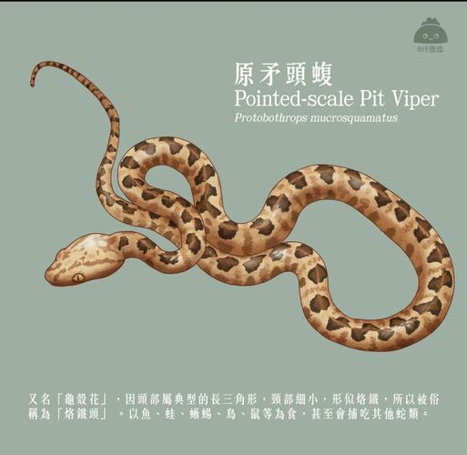 3、赤链蛇,别名火赤链、红蛇等,头宽扁,特征为红黑相间的斑纹。虽然是无毒蛇,但其口腔分泌物可能含有蟾蜍毒液,被咬后需及时消毒并治疗。 原矛头蝮,俗称龟壳花、烙铁头、笋壳斑等,是一种剧毒蛇。被咬后应视为毒蛇咬伤,紧急处理并尽快就医。