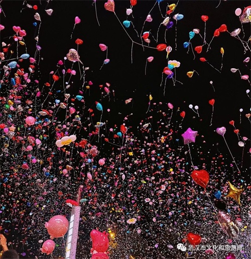 12月31日晚11点,楚河汉街的昭君广场准时开启。潮酷DJ在线打碟,气球雨、金粉、彩带雨全都有,所有人一起在“彩色雨”中蹦迪。那氛围,想想就热烈。