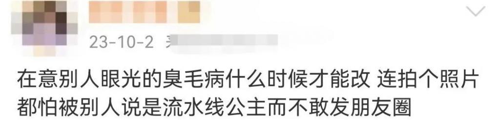 她们不敢尝试去拍照发朋友圈,担心被人们嘲讽是流水线公主。