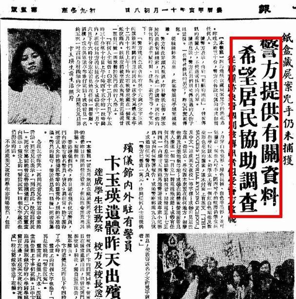 第二个:卞玉英的同学声称,案发当天,卞玉英打电话让自己将流行歌磁带送到跑马地电车站,说有朋友要借,但是并没有说借给谁。两人约定6点10分在跑马地电车站见面。