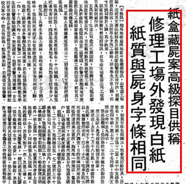 前面有提到清洁工打开纸箱后,卞玉英是被一张大报纸盖住的,而这张报纸,这家工厂也有,还是同一日期的。