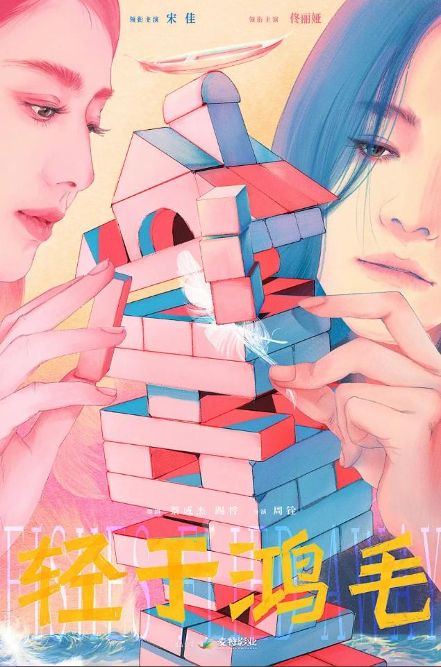 概念海报用一蓝一粉强烈的色彩对比,来分别象征了两位女主角的性格差异,一座摇摇欲坠的“积木房”也暗示了两人在电影中的微妙关系。