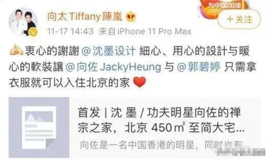 今日女报——面积有 450㎡,价值 1.5 亿 …… 向太晒向佐郭碧婷北京豪宅:黑白风装修低调奢华(2025.11.18)