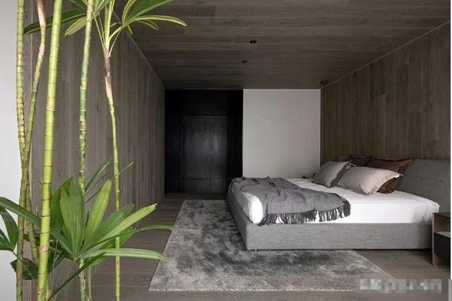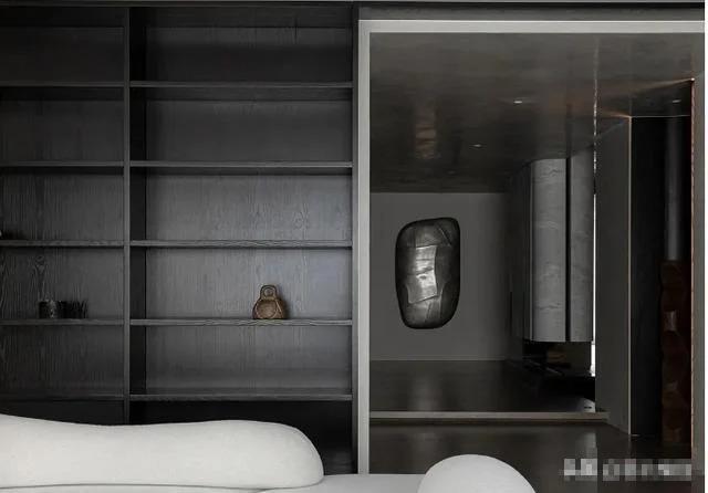 除此之外连墙壁柜都做的是墨黑色,确实显高级是没有什么错。但另一方面也不禁让人看起来十分的压抑,要知道这是居住的场所。