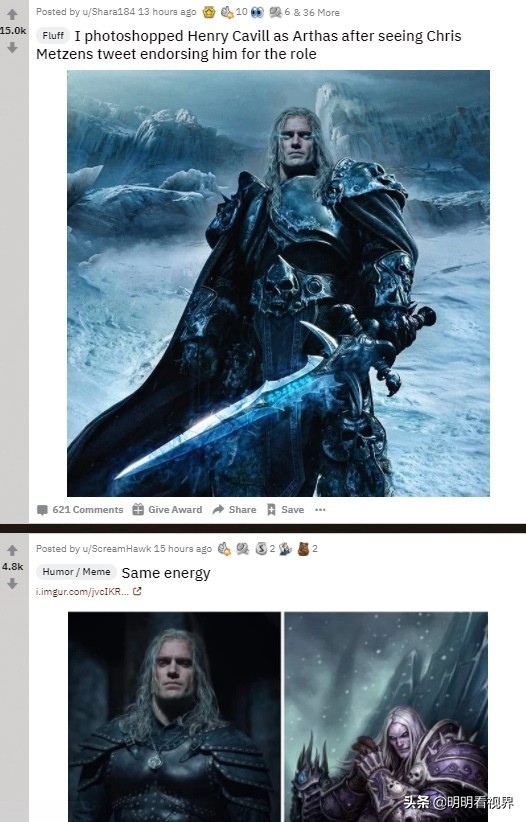 有意思的是,不单玩家在期待由亨利·卡维尔出演阿尔萨斯,这组猎魔人的剧照,连戈登和梅森都评论到“这会是一个令人惊叹的巫妖王”。