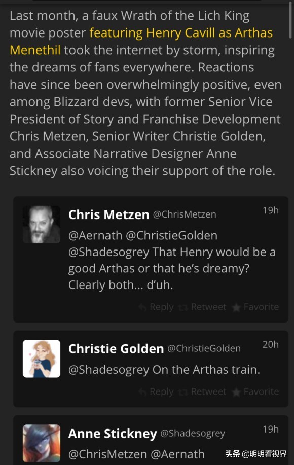 魔兽续作会不会让亨利·卡维尔出演阿尔萨斯,目前还没有确切的消息,但ICY给出的结论就是“很确定他不会拒绝这个角色,因为亨利是魔兽的忠实玩家”。