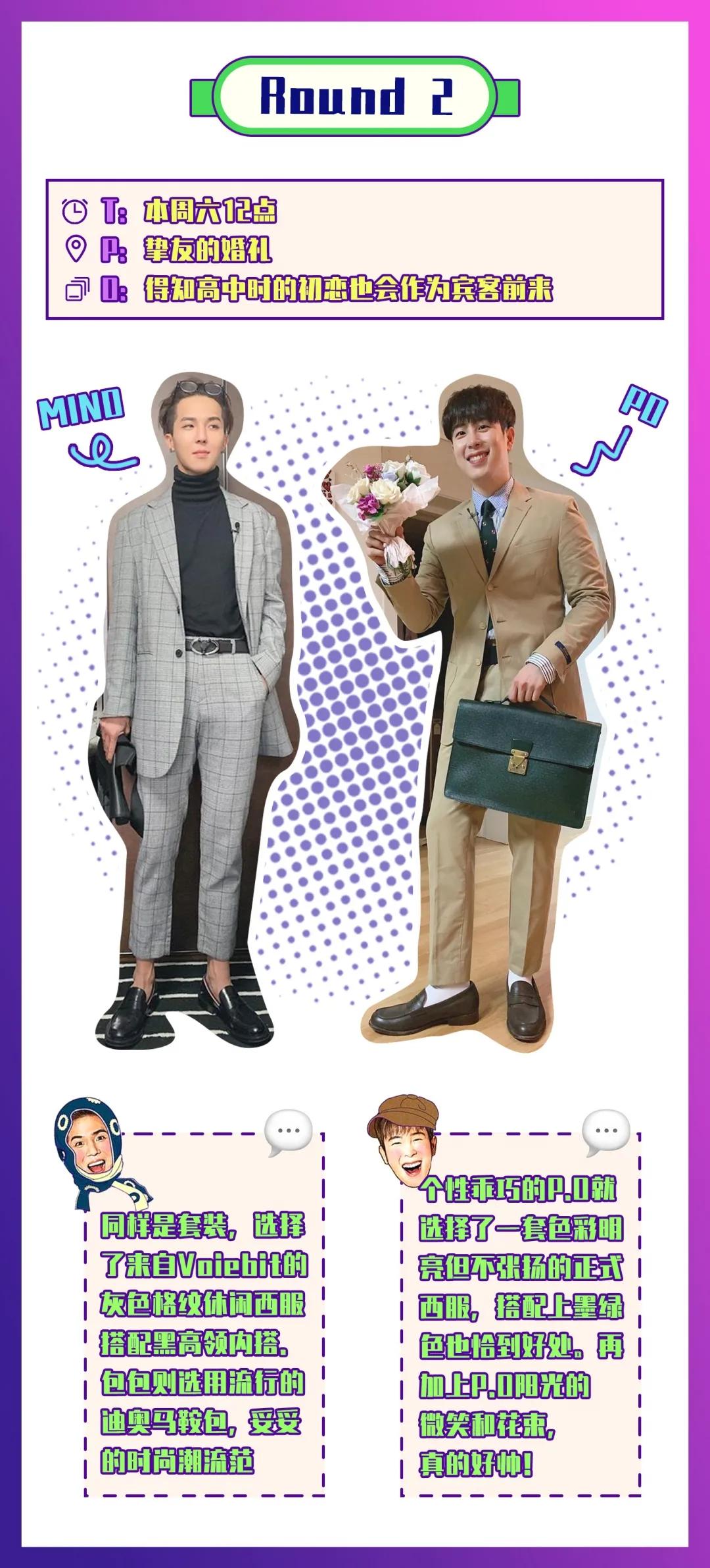 除了两人之间的PK,节目中还有一次团体战:让Mino和P.O临时邀请好友过来PK时尚穿搭。