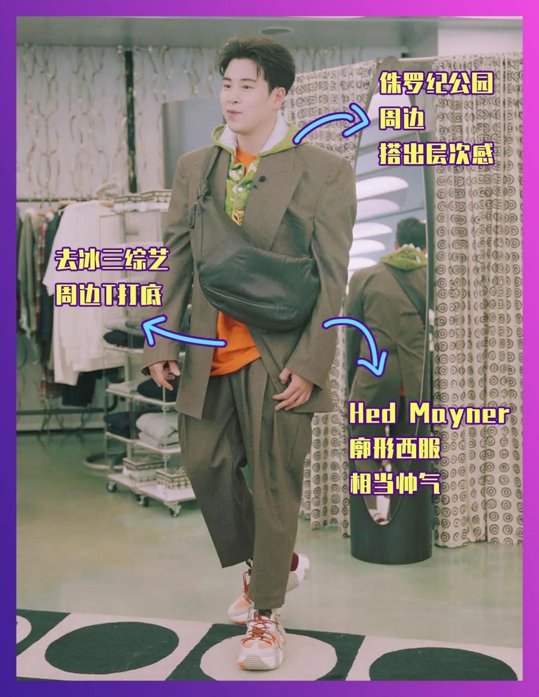 他还用一件T恤做下摆更强调时装感,不愧是走过LV秀场的男人(一般人别学)。