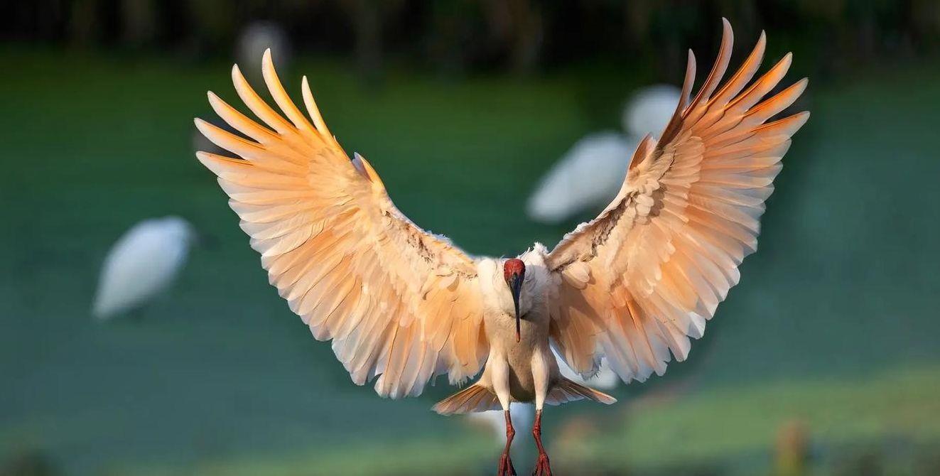 4、日本的国宝是朱鹮(huan二声),这是一种东亚特有的物种,中等体型,体羽白色,后枕部有长的柳叶形羽冠,额至面颊部皮肤裸露,呈鲜红色。繁殖期时用喙不断啄取从颈部肌肉中分泌的灰色素,涂抹到头部、颈部、上背和两翅羽毛上,使其变成灰黑色。朱鹮有着鸟中“东方宝石”之称。