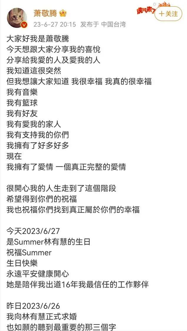 当时萧敬腾还发文表达了自己的喜悦之情,如今他们两人终于要举办婚礼了。