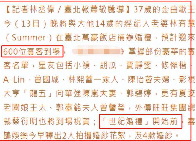 萧敬腾和林有慧这次的婚礼非常的盛大,一共有600 位嘉宾来到了婚礼的现场。