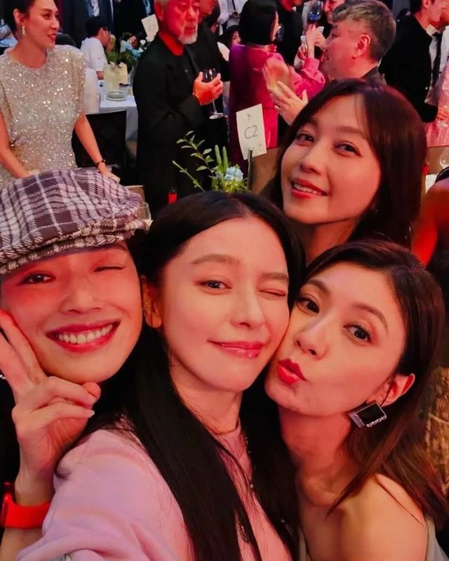 舒淇的打扮和周围人的礼服不同,穿着非常的休闲,头戴一个英伦帽,西装外套里面是短袖,下身穿了一个牛仔裤。