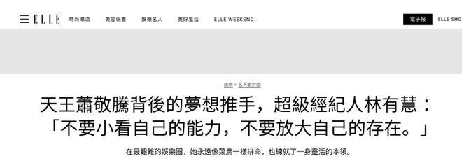 信息来源:ELLE 杂志——天王蕭敬騰背後的夢想推手,超級經紀人林有慧 : 不要小看自己的能力,不要放大自己的存在。