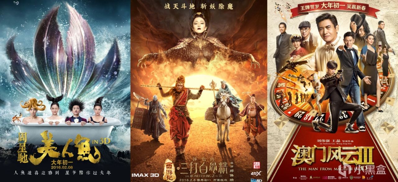 周星驰、邓超在16年带来了现象级春节档电影《美人鱼》,捧红林允,横扫春节档冠军最终拿下了33.9亿总票房,《西游记之三打白骨精》拿下12亿总票房,发哥的《澳门风云3》拿下11.2亿总票房!同年播出的还有《年兽大作战》,春节档总票房达到31亿!
