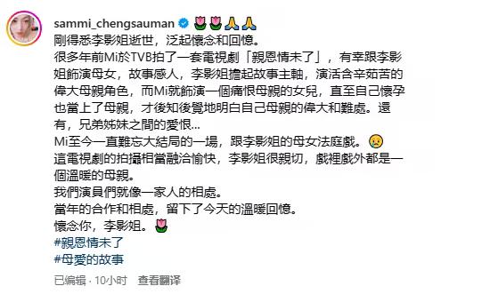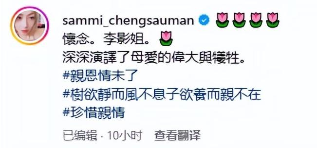 李影死讯传出后,一众香港明星老友都不敢信,郑秀文连续发文悼念,刘松仁更是大受打击。
