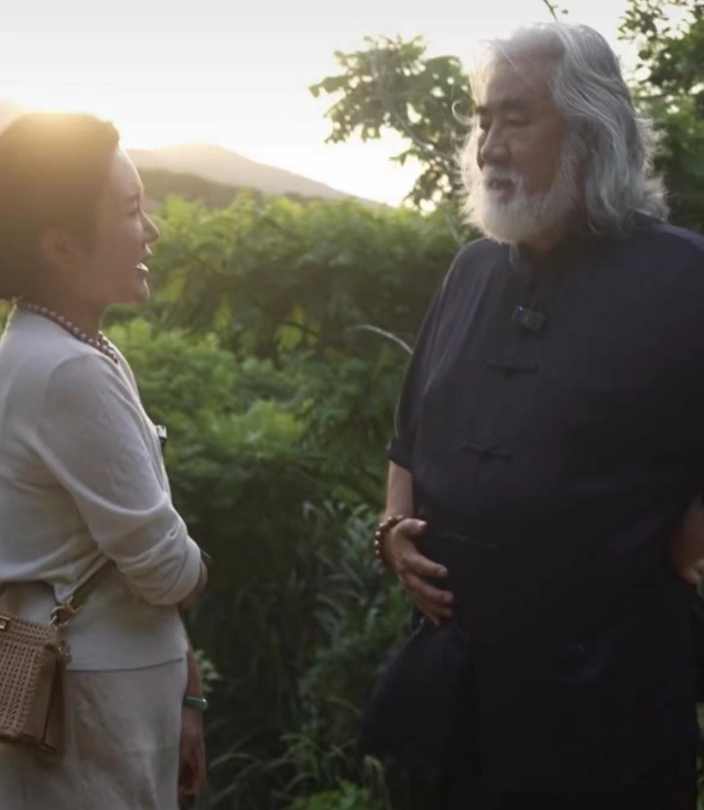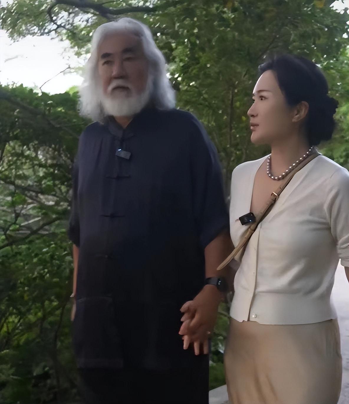 张纪中和杜星霖十指紧扣,两人边走边聊着金庸武侠的话题。