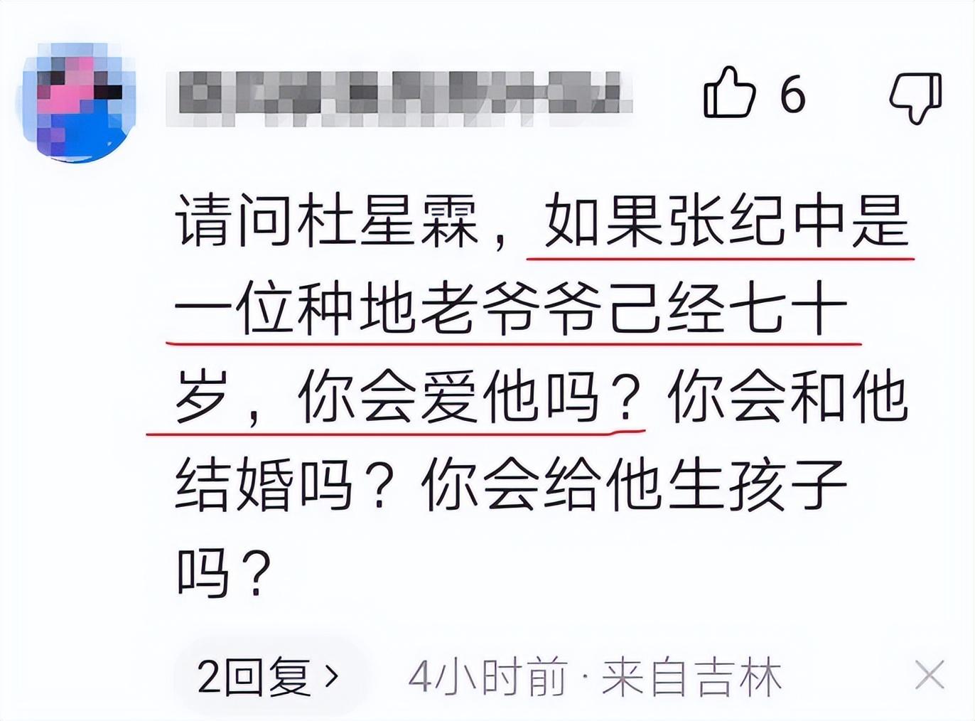 杜星霖曾在采访中提到说,张纪中的年龄与自己无关,自己只是喜欢他这个人。