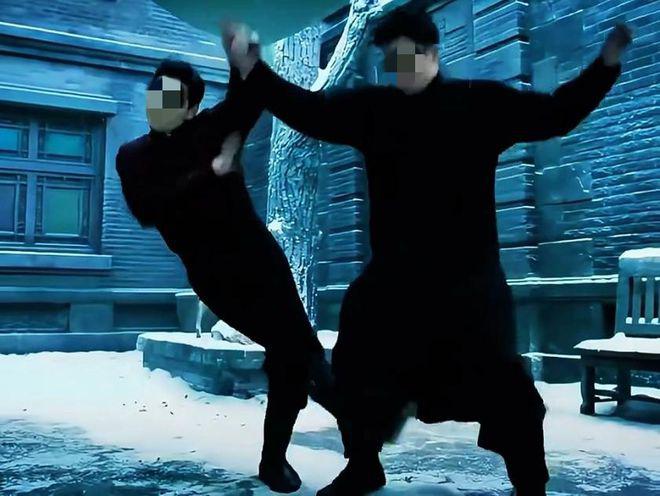 但不知为何,他做着做着,节奏跟不上,动作反方向,连姿势都诡异无比。