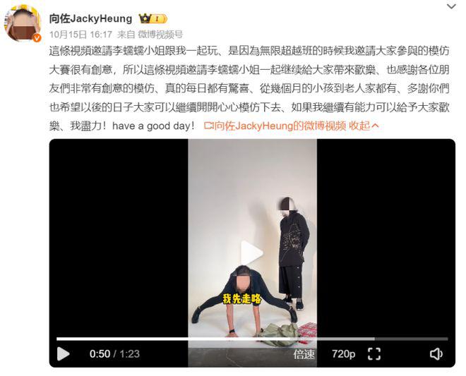 还和千万粉丝网红 " 李蠕蠕 " 合作了视频,一起模仿自己的经典动作。