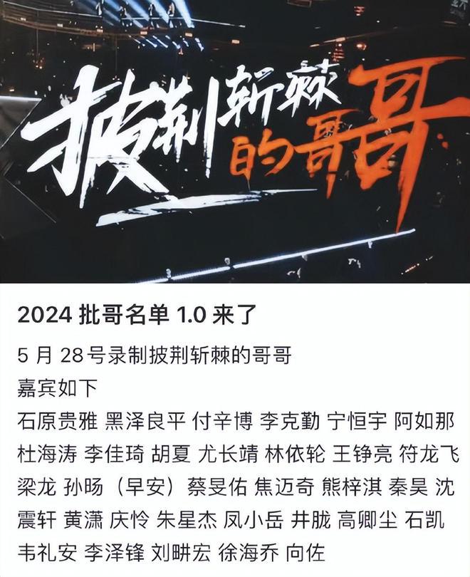 这不,眼下《披荆斩棘第四季》(以下简称《披哥 4》)将于 5 月 23 日起开始录制初舞台,只不过这一季网传的嘉宾名单可太炸裂了,究竟都有谁?