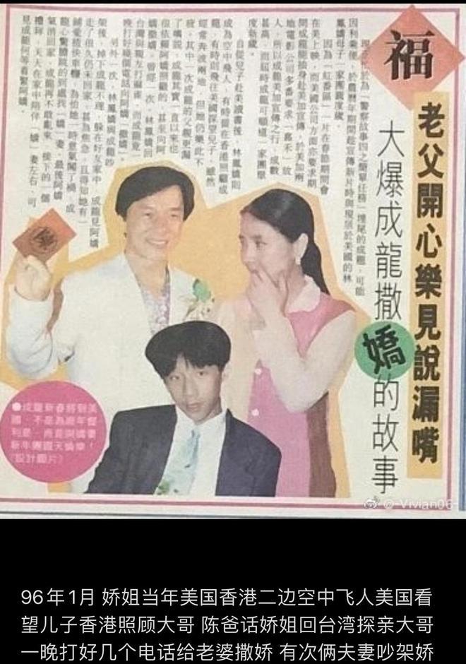 成龙在外面可谓是彩旗飘飘,绯闻不断,然而,即便在这样的情况下,港媒依旧报道了一则林凤娇两地照顾儿子丈夫的消息,暗示老公吃儿子醋,甚至有撒娇求关注的意思。