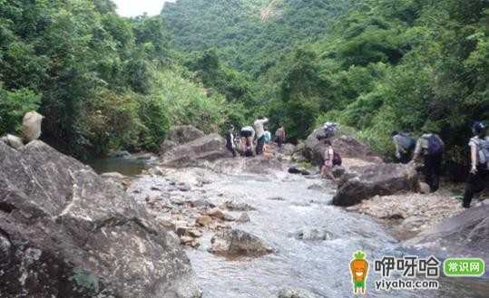 峡谷溪流中多滚石岩块,且湿滑难行,行走时应看准、踏稳,避免因踏上无根岩块跌倒或被急流冲倒。