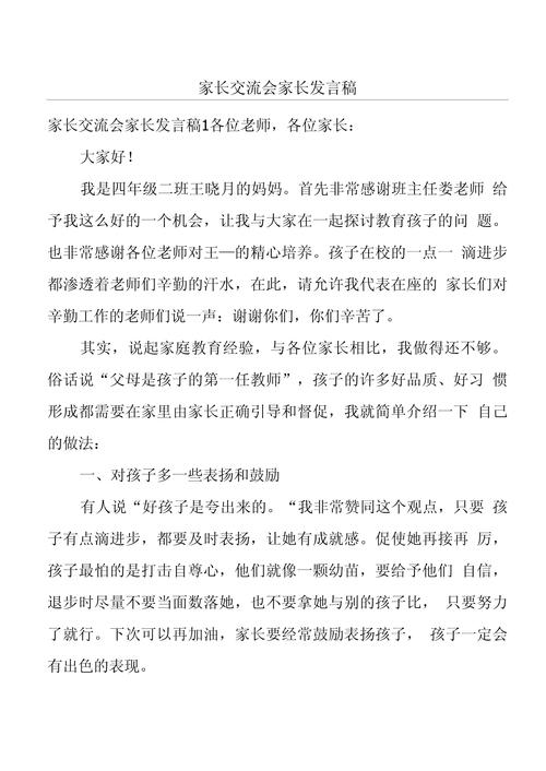 4、尊敬的老师、家长朋友、亲爱的孩子们:大家好!我是李乐乐的妈妈,很荣幸能代表各位家长发言。我的女儿李乐乐并非最优秀,但她阳光、开朗、自信自立、积极向上、乐于助人,这些品质是我们引以为傲的。今天,我与大家分享几个关于孩子成长的经验。