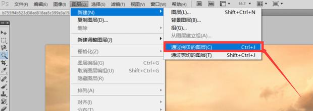 在上方选择【图层】->【新建】->【通过拷贝的图层】