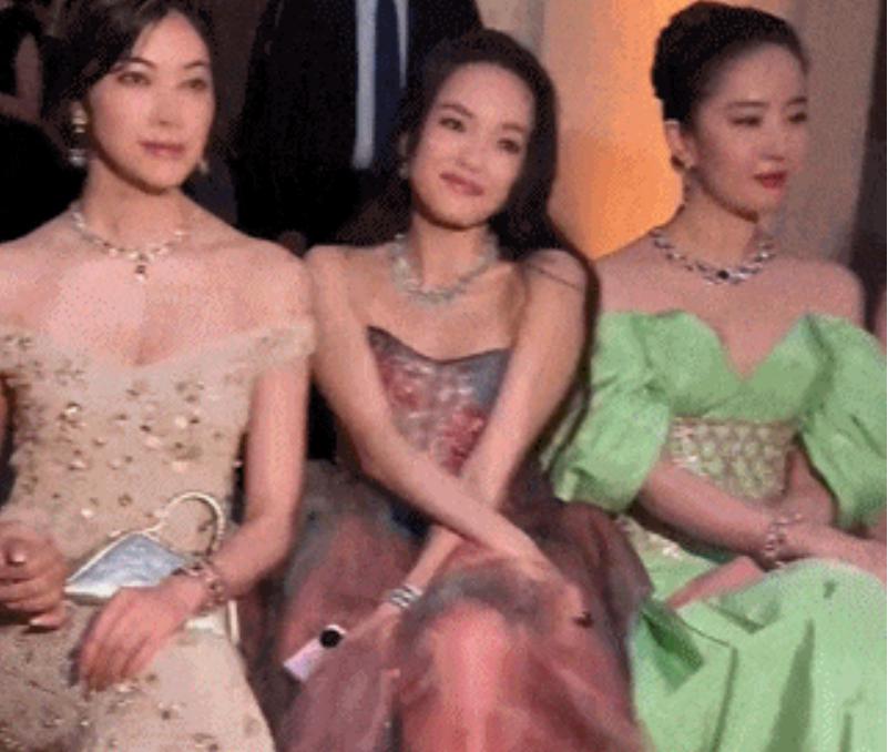 刘亦菲坐的很正,甚至肩膀都没有打开,舒淇靠刘亦菲那边的胳膊是叠在刘亦菲胳膊上面的。