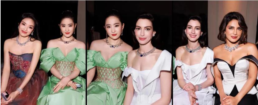 刘亦菲和舒淇都是宝格丽品牌官宣过的全球代言人,加上安妮海瑟薇,全球代言人一共四个。