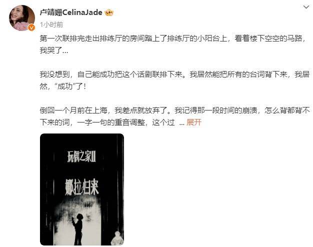 卢靖姗发长文透露排话剧曾崩溃 感谢章子怡选择她