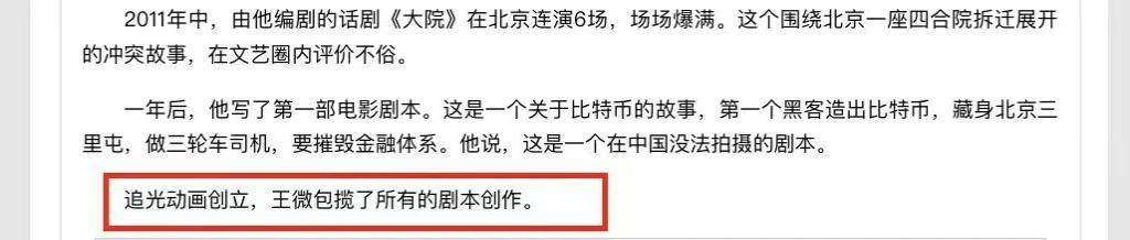 早在王微的个人访谈里,关于他在追光动画公司担任编剧的往事就已讲得很清楚。