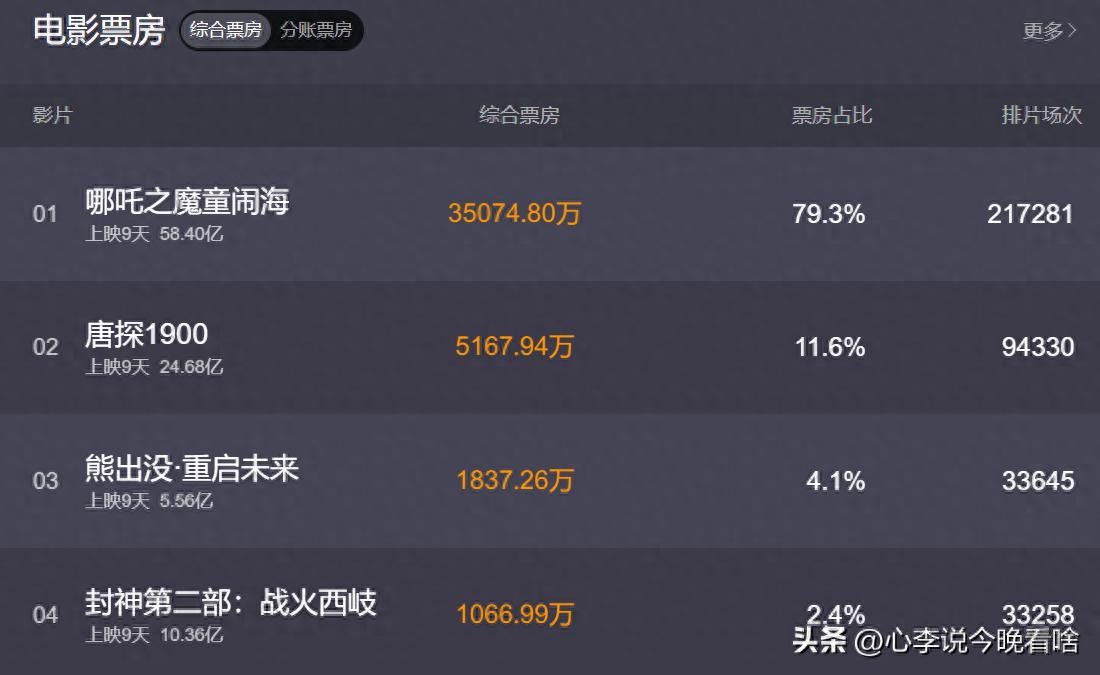 随着哪吒2的票房持续走高,我们看到内地电影票房的第一名就要易主了。可以看到在工作日,哪吒2的单日票房还能达到5亿左右,这个成绩真的是其他影片望尘莫及了。一开始唐探1900和哪吒的票房差距还不算大,现在每天的票房差距已经是很大了,哪吒2应该用一骑绝尘这个词语来形容了。